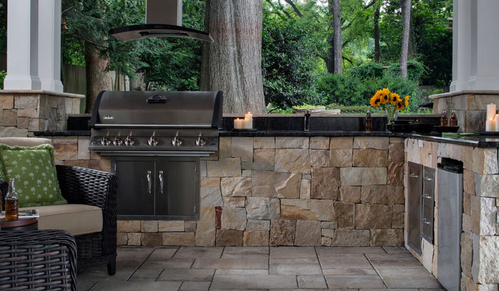 Why stop at just a grill? Fall weekends and football season practically beg for an outdoor kitchen. Imagine a setup with natural stone accents, durable countertops, built-in appliances, and a grill that’s ready for anything—from burgers to brisket. An outdoor kitchen that’s done right can blend seamlessly into your backyard, creating an extension of your home that looks great and makes hosting a breeze.